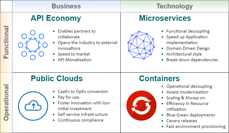 - Functional vs Operational: here the split depends more on the goals and needs of the requestor. E.g: a CIO optimizing a data center could be more interested in the operational side, compared to a Business manager that needs developing new features at an increased speed.